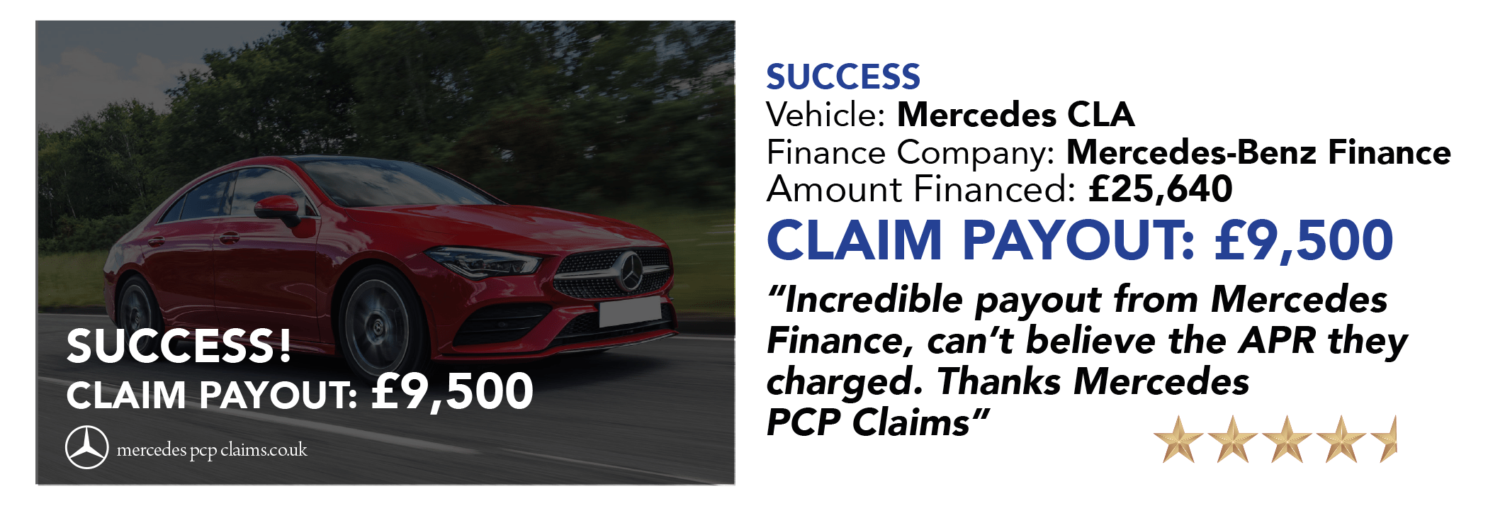 This depends on the amount that you financed and the APR, generally the higher the amount financed the larger the amount of claim. Whether you had a PCP or Hire Purchase, our average pay-out on Mercedes’s is £13,500.